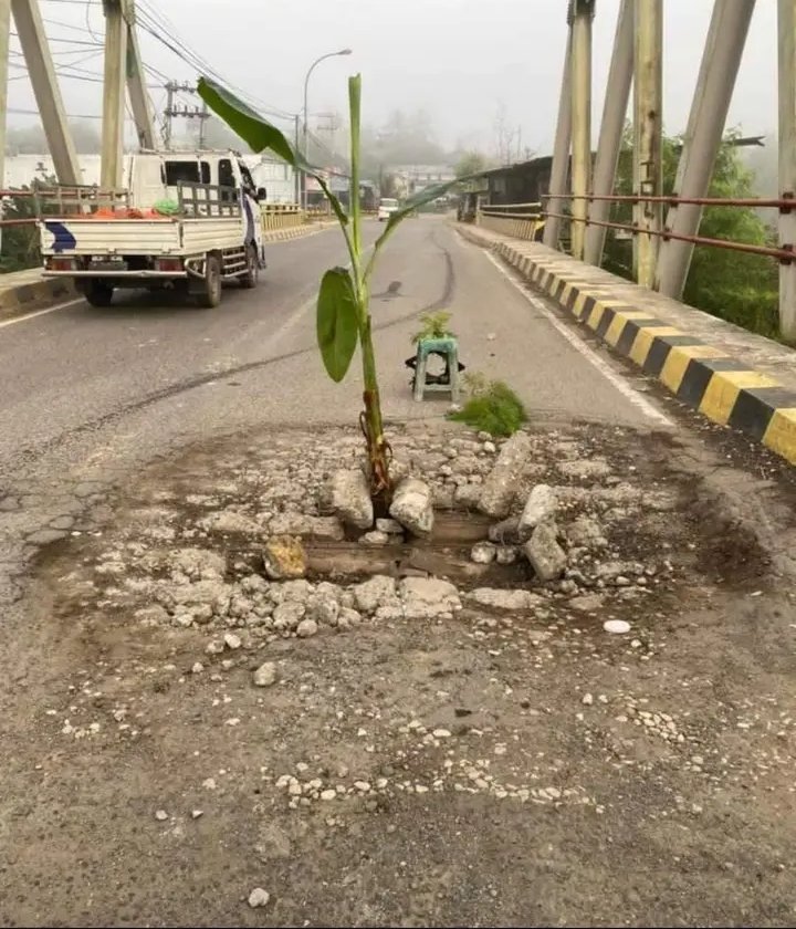 Kemudian dari warga juga menanam pohon pisang di jembatan tersebut sebagai bentuk aspirasi masyarakat agar jembatan tersebut dapat diperbaiki.